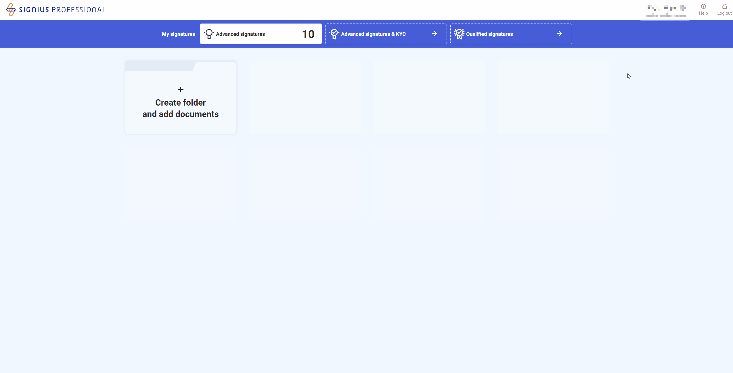 2. Go to "**Account Settings**" (cogwheel in the upper right corner) and select the appropriate signature package depending on your order (Advanced Signatures or Qualified Signatures).&#x20;