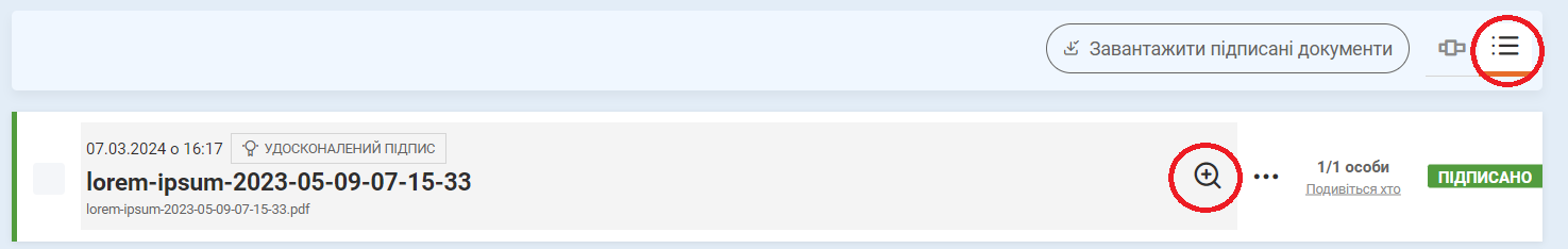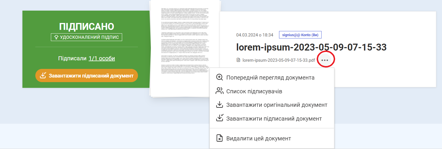 2. Натисніть на **3 крапки** під назвою документа і виберіт&#x44C;**"Завантажити підписаний документ**".